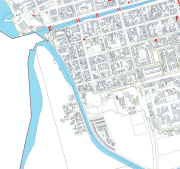 Carte scannée du schéma directeur d'assainissement des eaux pluviales de l'île de Cayenne. Cette carte représente les zones à enjeux sur la commune de Cayenne.